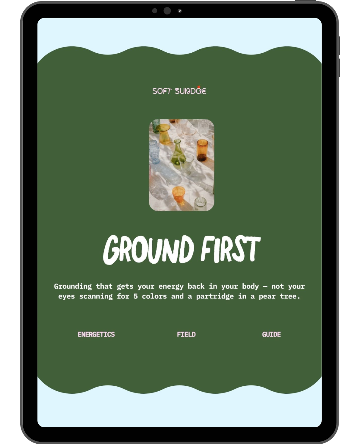 The only field guide for when your brain’s fried and your body’s like “nope.” Not the 5-4-3-2-1 grounding they taught you in therapy. With quick, nervous system-safe practices and zero woo, it helps you clear the static, land your energy, and actually get started (or carry on).